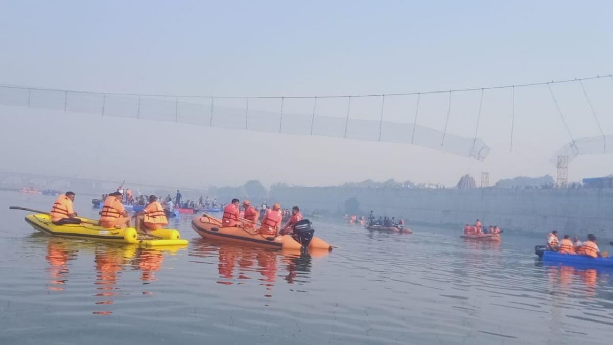 In the darkness of the night the police local officials disaster response teams and military personnel continued their search for survivors and the bodies of the dead. The Morbi Bridge Collapse over the Machchhu river has left 141 dead. Some youths shook suspension bridge.